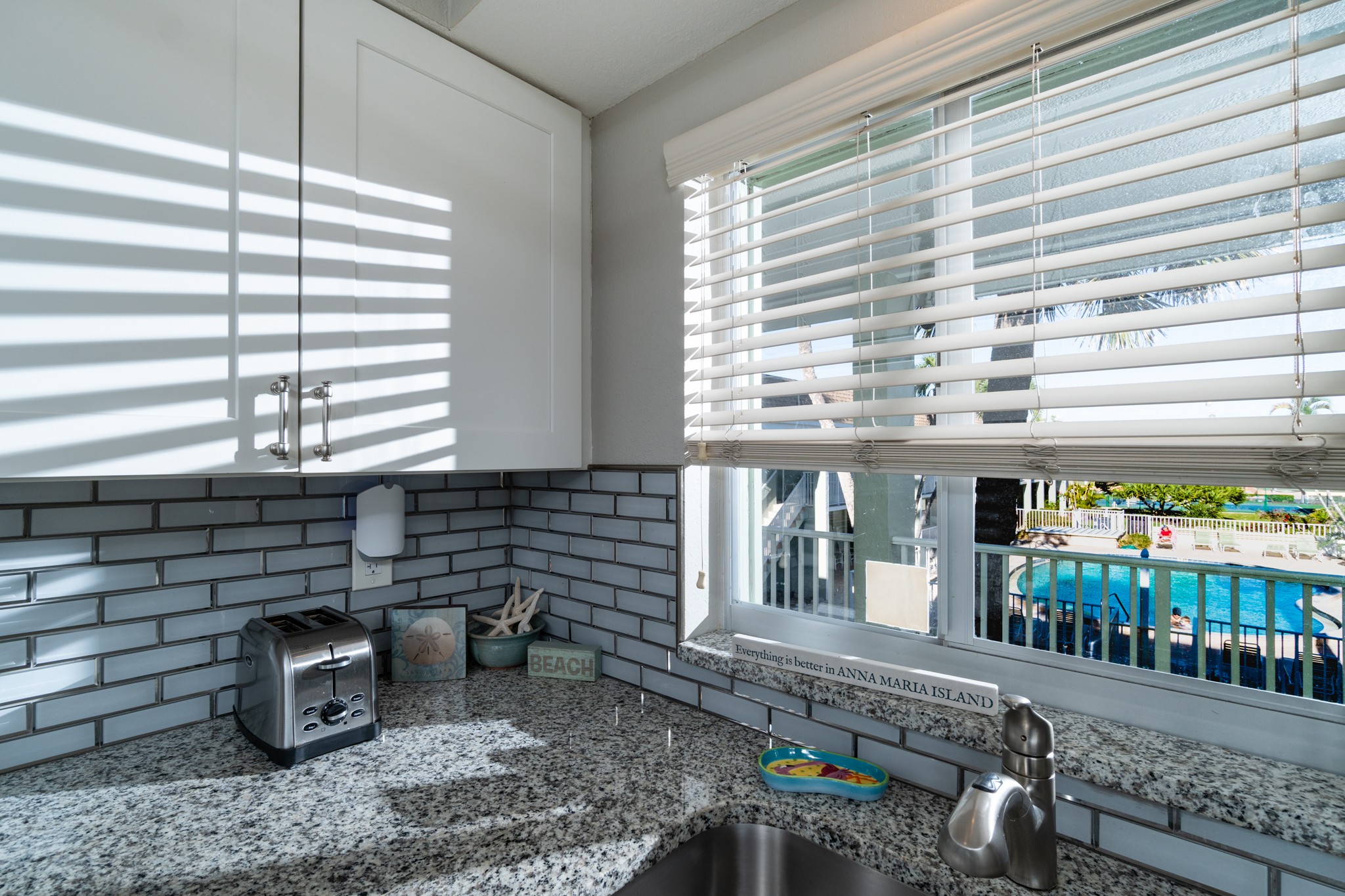 This 2 bedroom 2 bath poolside condo has a full kitchen with all modern conveniences, and there's plenty of room to accommodate 4 persons. Enjoy your morning coffee or your evening dinner on your private outdoor patio, or visit the local restaurants for a wide variety of choices here on Anna Maria Island. From burgers to bistros, breakfast lunch or dinner, you'll find plenty of choices on this unique Island.