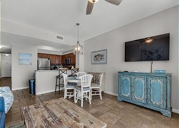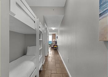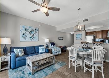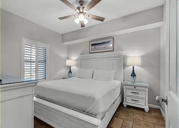 Step out onto your private balcony and take in stunning Gulf views—the perfect spot for morning coffee or sunset cocktails. Inside, the spacious master suite features a king-size bed and private bathroom. A cozy hallway bunk bed and a queen sleeper sofa in the living room offer extra sleeping space for families or small groups.