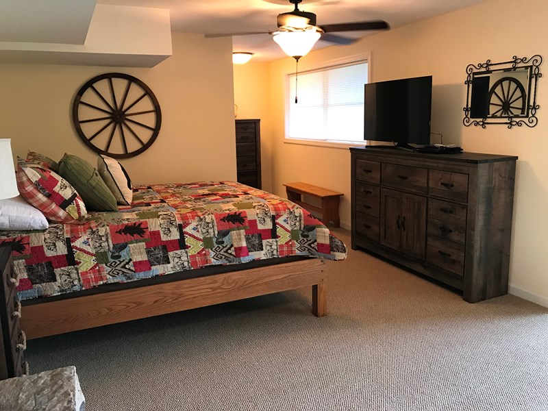Upstairs is a large open loft area with a recreation room with a pool table that yields views that offer numerous distractions to the game. . The cabin is Wi-Fi enabled throughout, so bring your laptop and you can stay “connected”, if the urge hits you.