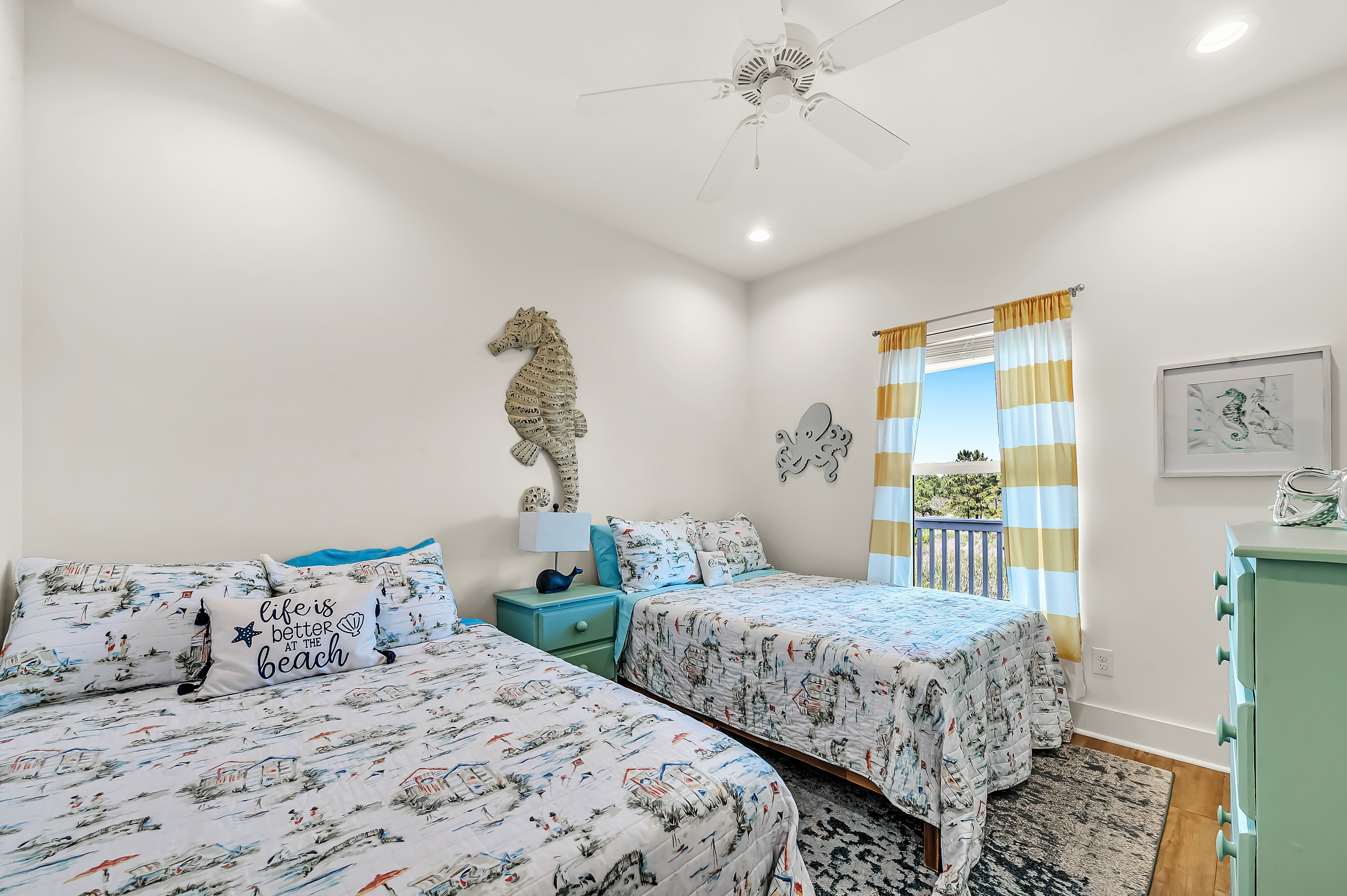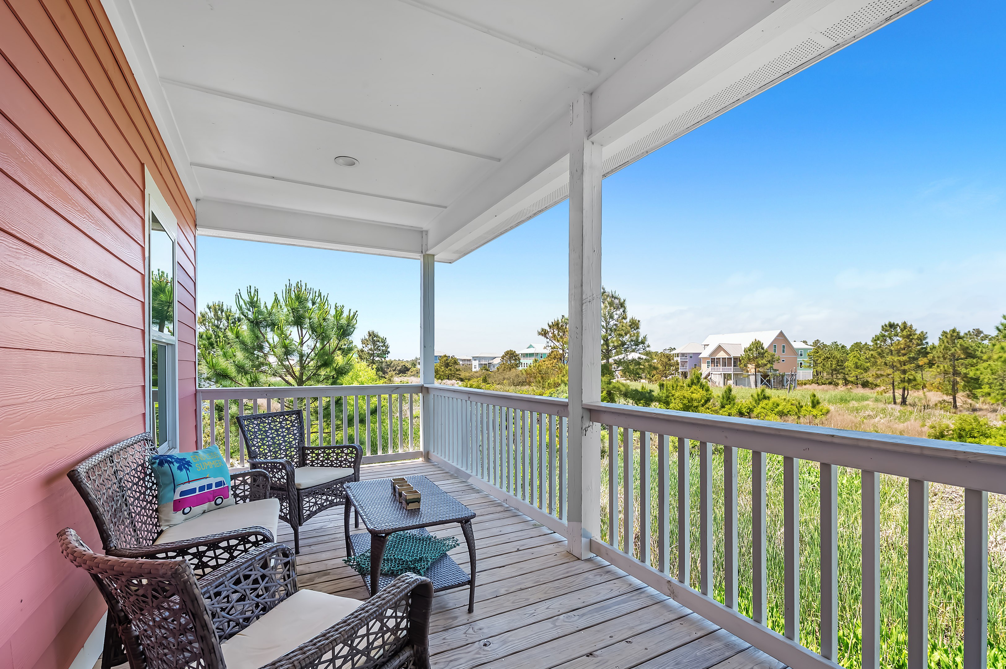 We strive to provide anything you would need to make yourself at home. We provide beach towels, beach toys (we recommend seeing what we have before you purchase beach toys as we accumulate items weekly), beach wagon with big wheels, air compressor, cooler, and commercial ice machine. Thanks to our cleaners Dan and Lisa we have had 5 star cleanliness for the several years we have rented. The beds are know to be comfortable and we supply extra linens for the cold natured guest. Kids love the Turtles Nest a bunk alcove by the back door that makes you feel like you are swimming in the ocean. With all the room we can comfortabley sleep 10 adult guest. We have parking for appox 7 cars. Also have an ourtdoor shower.