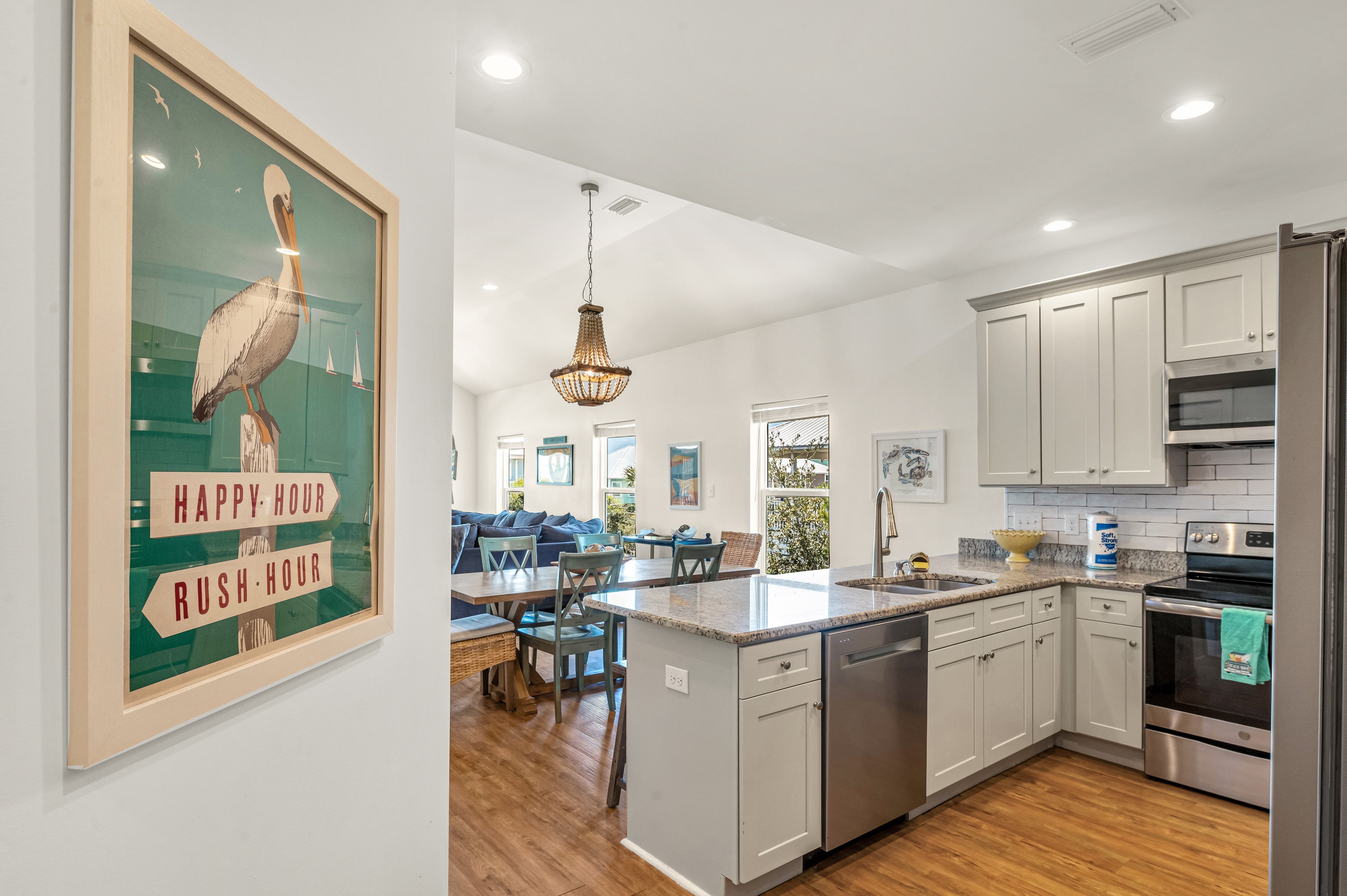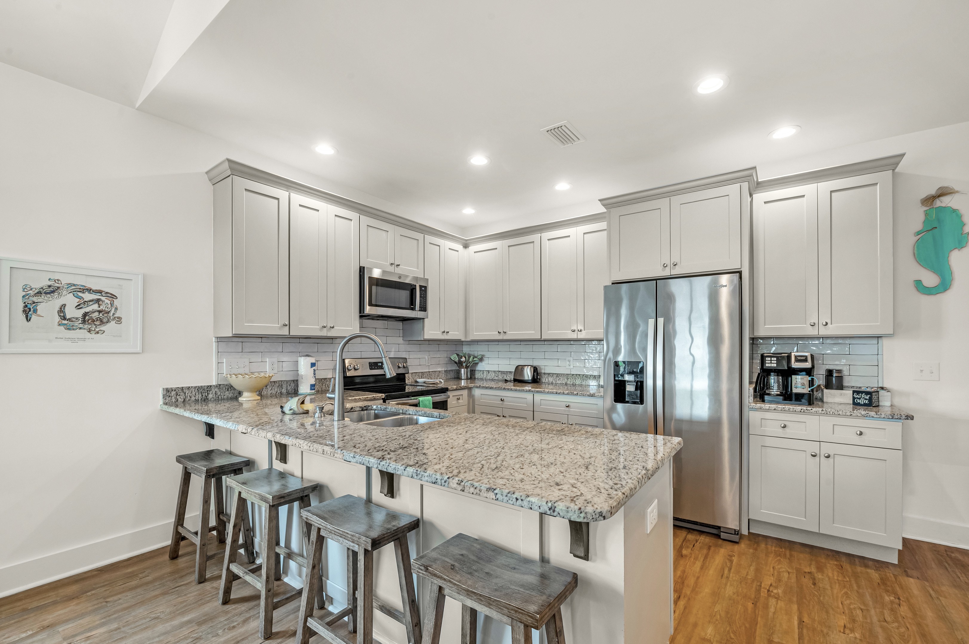 • Blender   Can Opener   Coffee Maker   Counter   Dishes   Dishwasher   Eat-in   Garbage Disposal   Microwave   Mixer   Pots   Refrigerator   Stove   Toaster   Utensils
