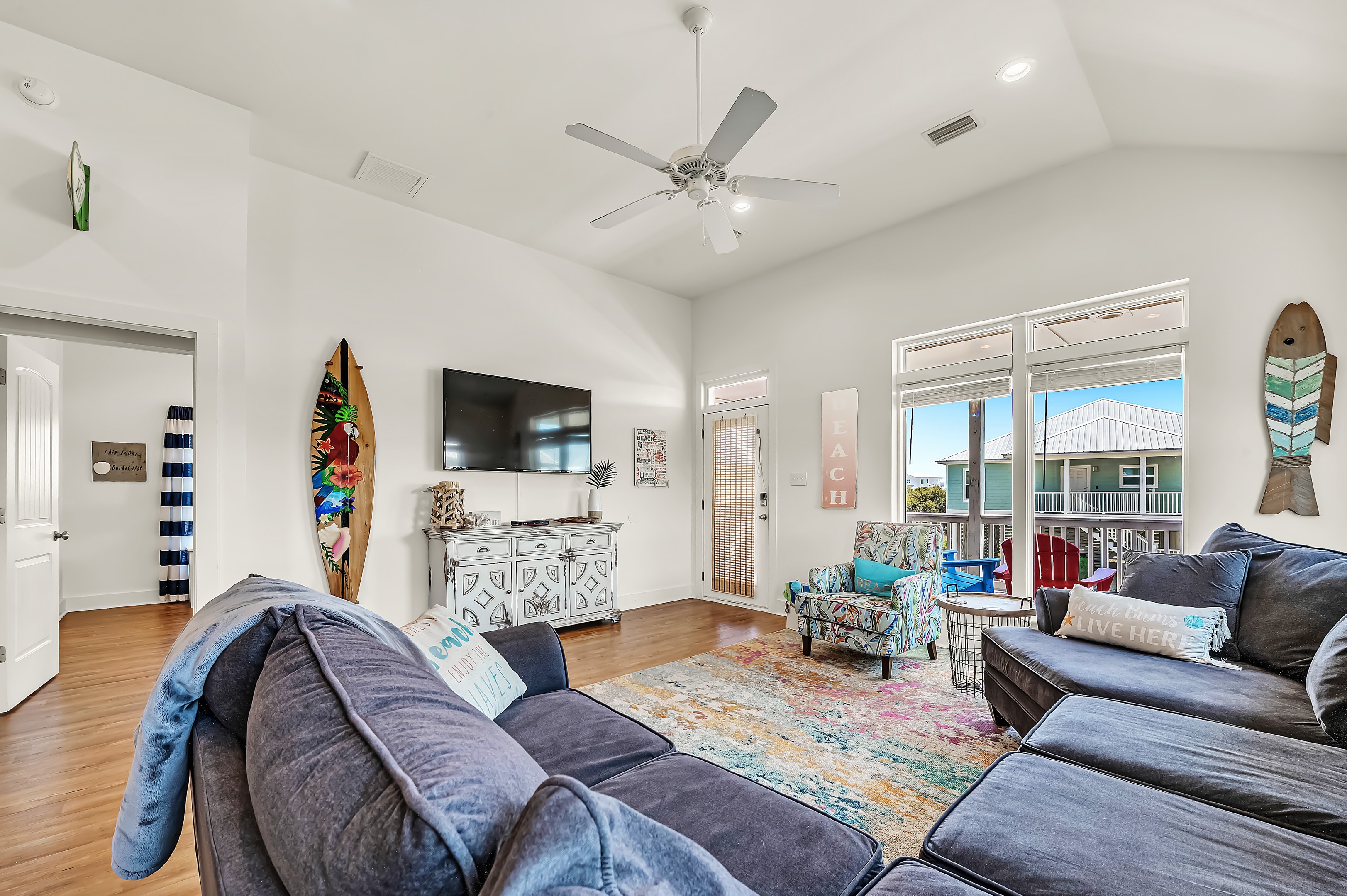 The Beach Bum is a 3 bedroom 2 bath beach house located in Gulf Shores AL. We are on the Fort Morgan penisula in beautiful Morgantown. The neighborhood is located on the beach and has 3 private boardwalks and golf cart parking on west end. Right next to that parking lot is a public parking lot and public beach access. Our home is only about a 5-10 min walk to nearest boardwalk. Morgantown has it all from 2 pools (one recently renovated and is heated) to tennis court, pickle ball court and basket ball goal. Bring your golf cart or rent one from Island Carts LLC. Enjoy sunsets, little traffic, picturesque homes and nature. Morgantown does not disappoint with the Gulf in our back yard.