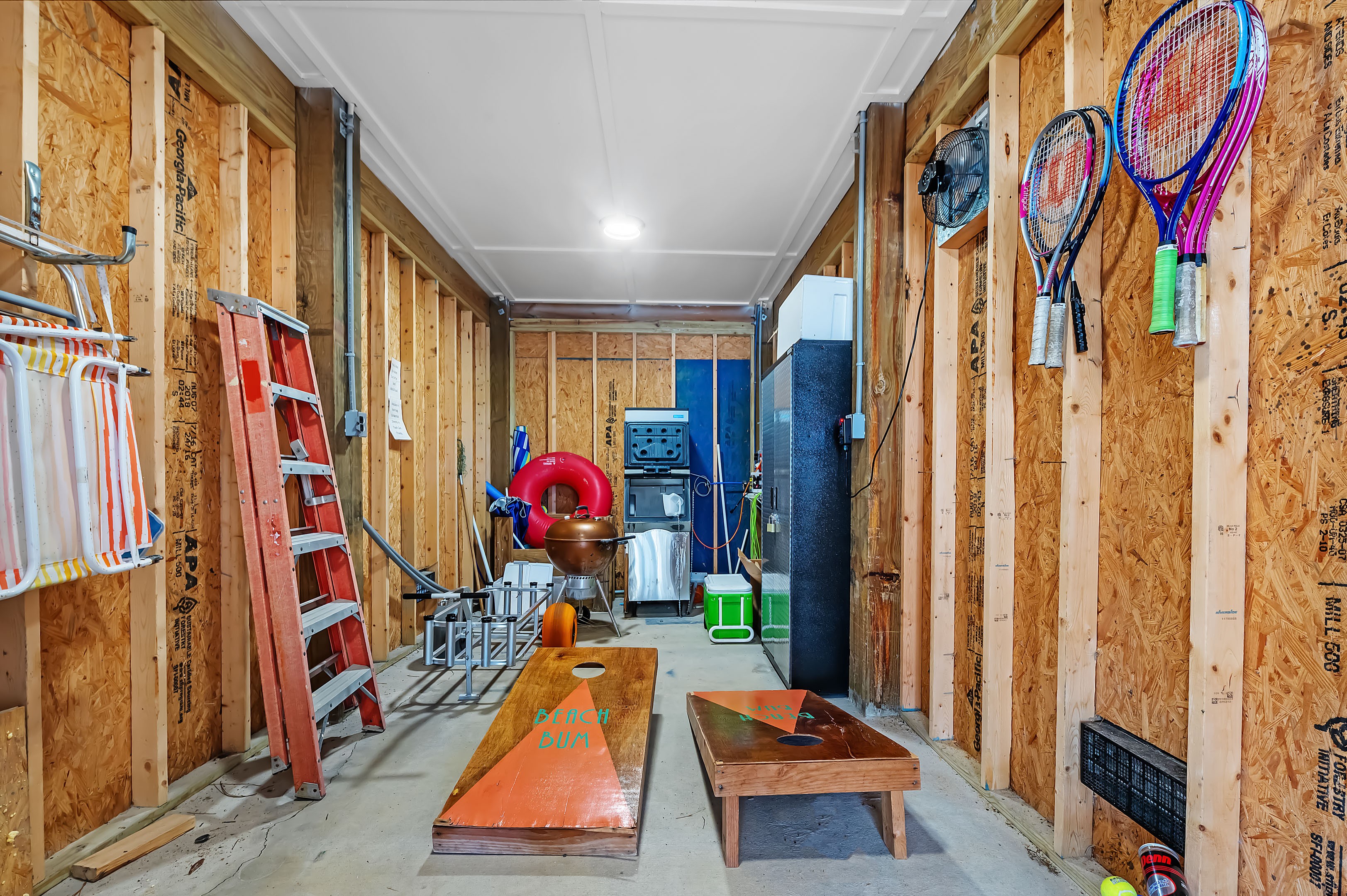 • BBQ Grill   Community Pool   Garage   Outside Shower   Porch   Porch Furniture   Private Parking   Tennis Courts   Commercial Ice Machine   Beach Wagon   Some items for beach    Corn Hole Game   Tennis Rackets and balls